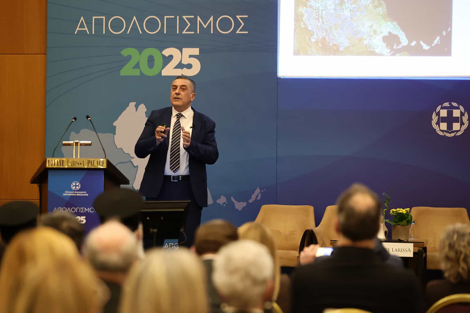 Με τη φράση «από τον σχεδιασμό στην καθημερινότητα του πολίτη» ξεκίνησε την ομιλία του ο Περιφερειάρχης Θεσσαλίας Δημήτρης Κουρέτας, παρουσιάζοντας τον απολογισμό της Περιφερειακής Αρχής για το 2025 για την  Περιφερειακή Ενότητα Λάρισας, στην κατάμεστη από κόσμο αίθουσα του ξενοδοχείου Divani, ενώ την ολοκλήρωσε με την φιλοσοφία που διέπει την διοίκηση: «Δεν μας χαρακτηρίζει η ισχύς της αξίας μας, αλλά η αξία της ισχύος μας».