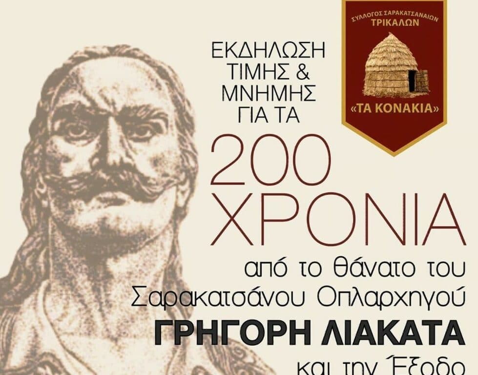 Εκδήλωση τιμής και μνήμης για την επέτειο των 200 χρόνων από τον θάνατο του Σαρακατσάνου οπλαρχηγού Γρηγόρη Λιακατά, διοργανώνει ο Σύλλ...