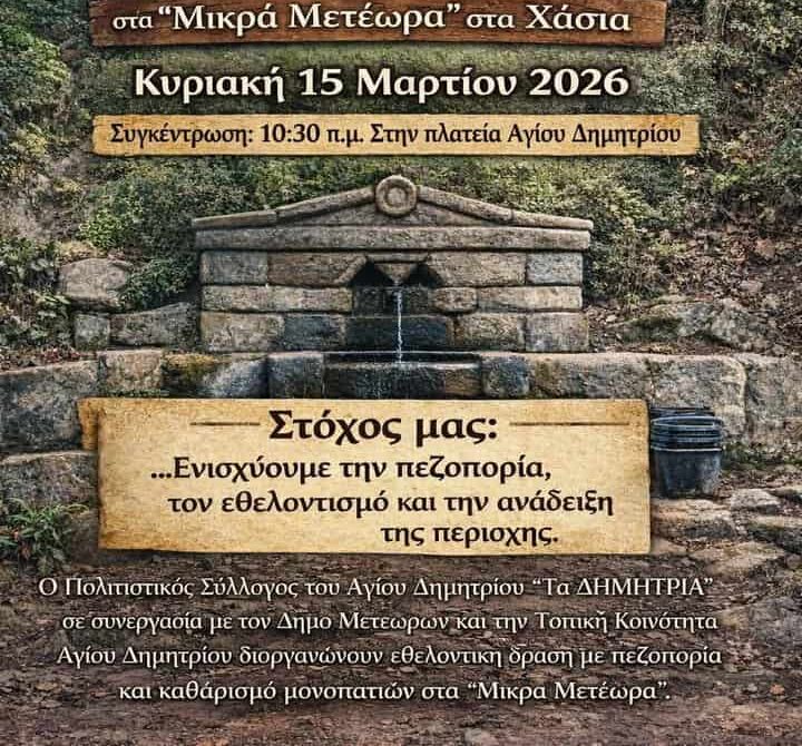 Ο Πολιτιστικός Σύλλογος Αγίου Δημητρίου «ΤΑ ΔΗΜΗΤΡΙΑ», σε συνεργασία με τον Δήμο Μετεώρων και την Τοπική Κοινότητα Αγίου Δημητρίου, διο...