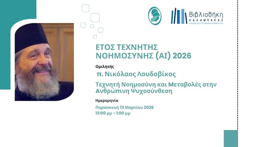 Βιβλιοθήκη Καλαμπάκας: Διαδικτυακή ομιλία με θέμα: «Τεχνητή Νοημοσύνη και μεταβολές στην ανθρώπινη ψυχοσύνθεση»