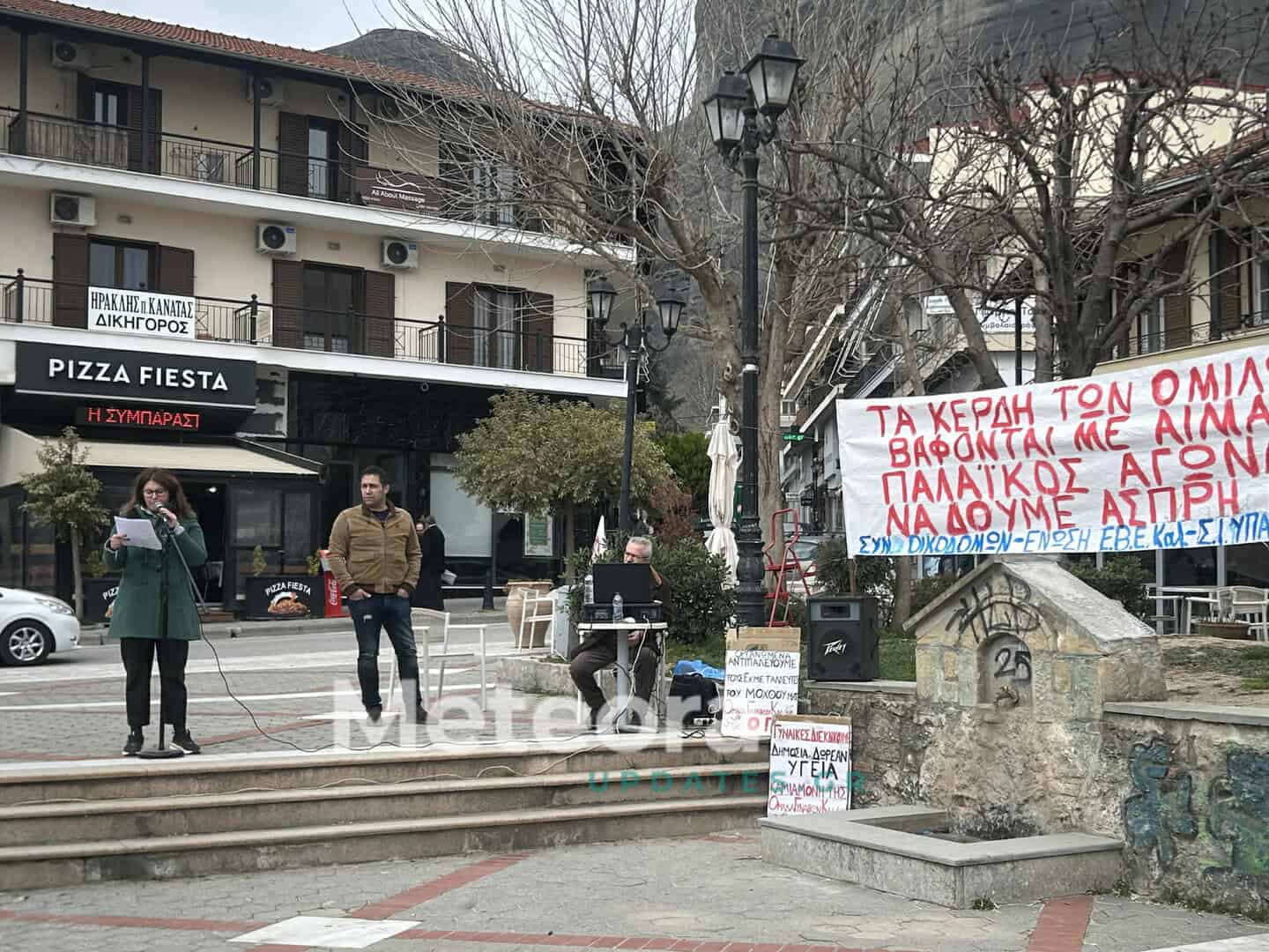 Απεργιακή συγκέντρωση σωματείων στην Κεντρική Πλατεία Καλαμπάκας για την τραγωδία των Τεμπών