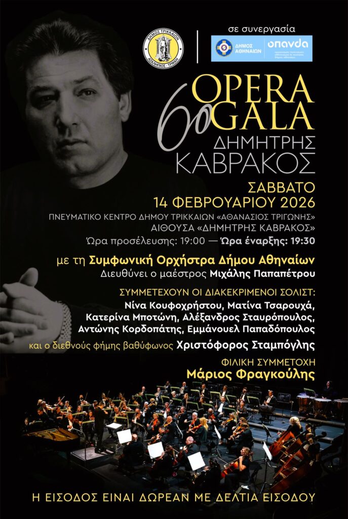 06 Φεβ Θεσσαλία Βραδιά όπερας στα Τρίκαλα με το 6ο «Opera Gala Δημήτρης Καβράκος» Posted by efi 6 Φεβρουαρίου, 2026 Μεγάλη καλλιτεχνική βραδιά Όπερας θα πραγματοποιηθεί στα Τρίκαλα από τον Δήμο Τρικκαίων, αφιερωμένη στον παγκόσμιας φήμης τρικαλινό βαθ... Διαβάστε Περισσότερα