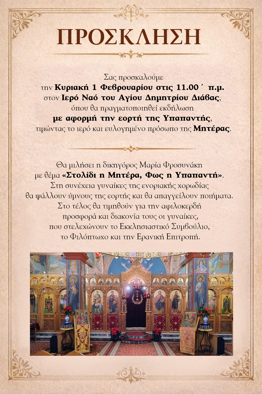 Τοπικά Εκδήλωση με αφορμή την εορτή της Υπαπαντής στον Ιερό Ναό Αγίου Δημητρίου στην Διάβα Posted by efi 30 Ιανουαρίου, 2026 On 30 Ιανουαρίου, 2026