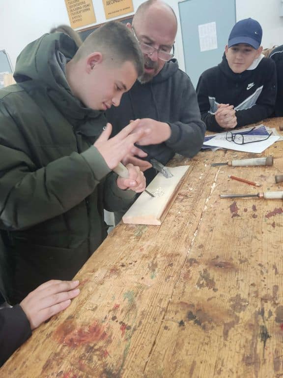 Κατά την επίσκεψή τους στη Σχολή Ξυλογλυπτικής, οι μαθητές είχαν την ευκαιρία να γνωρίσουν από κοντά την τέχνη της ξυλογλυπτικής, να παρακολουθήσουν τη διαδικασία δημιουργίας έργων και να ενημερωθούν για την ιστορία και τη σημασία της τέχνης αυτής στην ελληνική πολιτιστική κληρονομιά. Η επαφή με τα έργα και τους δημιουργούς ενέπνευσε τους μαθητές και ανέδειξε τη σημασία της διατήρησης των παραδοσιακών τεχνών.