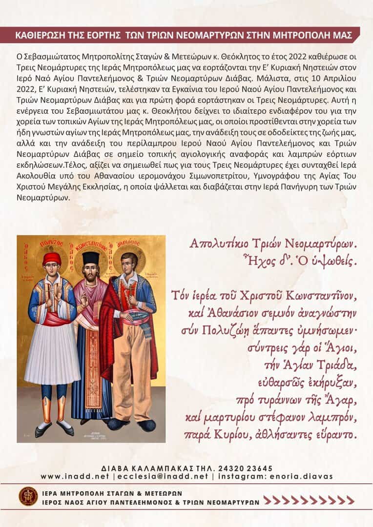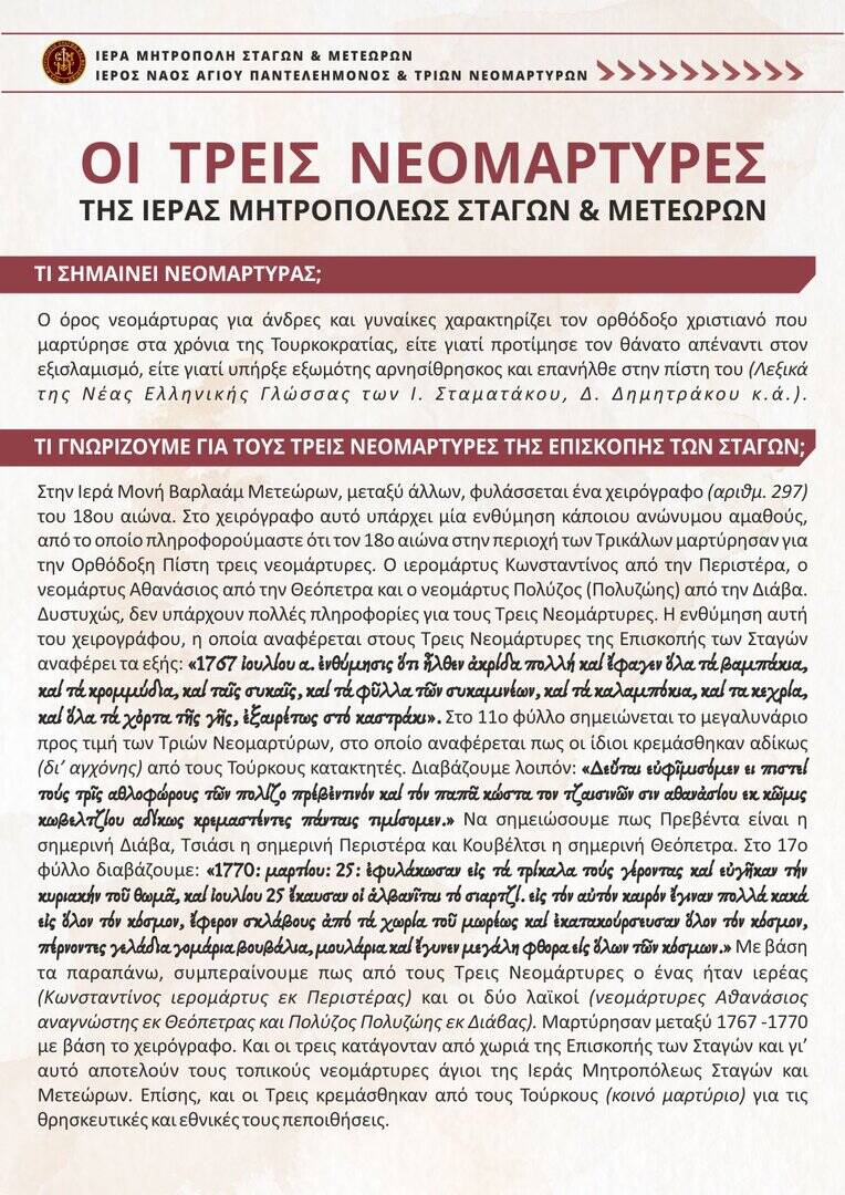 Γνωριμία με τους Τρεις Νεομάρτυρες της Ιεράς Μητροπόλεως Σταγών & Μετεώρων