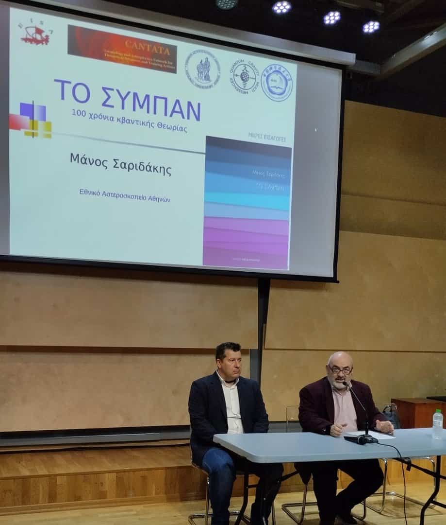 Κεντρικός ομιλητής ήταν ο Δρ Μάνος Σαριδάκης, Διευθυντής Ερευνών στο Εθνικό Αστεροσκοπείο Αθηνών, ο οποίος παρουσίασε με επιστημονική ακρίβεια, αλλά και με τρόπο κατανοητό για το ευρύ κοινό, τη συναρπαστική ιστορία του Σύμπαντος.