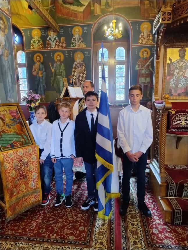 Το πρωί, στον Ιερό Ναό Αγίου Δημητρίου, τελέστηκε η πανηγυρική Θεία Λειτουργία και η επίσημη Δοξολογία.