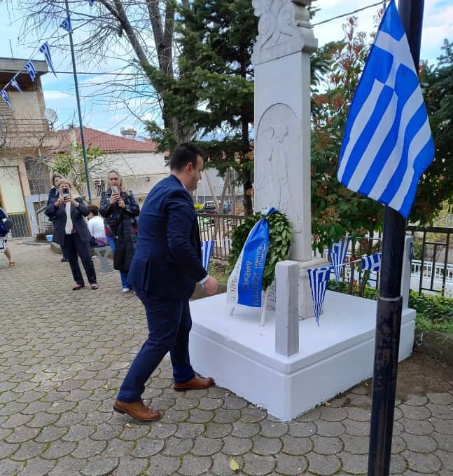 Αμέσως μετά, οι παρευρισκόμενοι, ανάμεσα στους οποίους βρίσκονταν εκπρόσωποι των τοπικών αρχών, μέλη του Πολιτιστικού Συλλόγου και μαθητές, μετέβησαν στο Μνημείο των Πεσόντων. Εκεί τελέστηκε επιμνημόσυνη δέηση στη μνήμη των ηρώων που θυσιάστηκαν για την ελευθερία της πατρίδας.