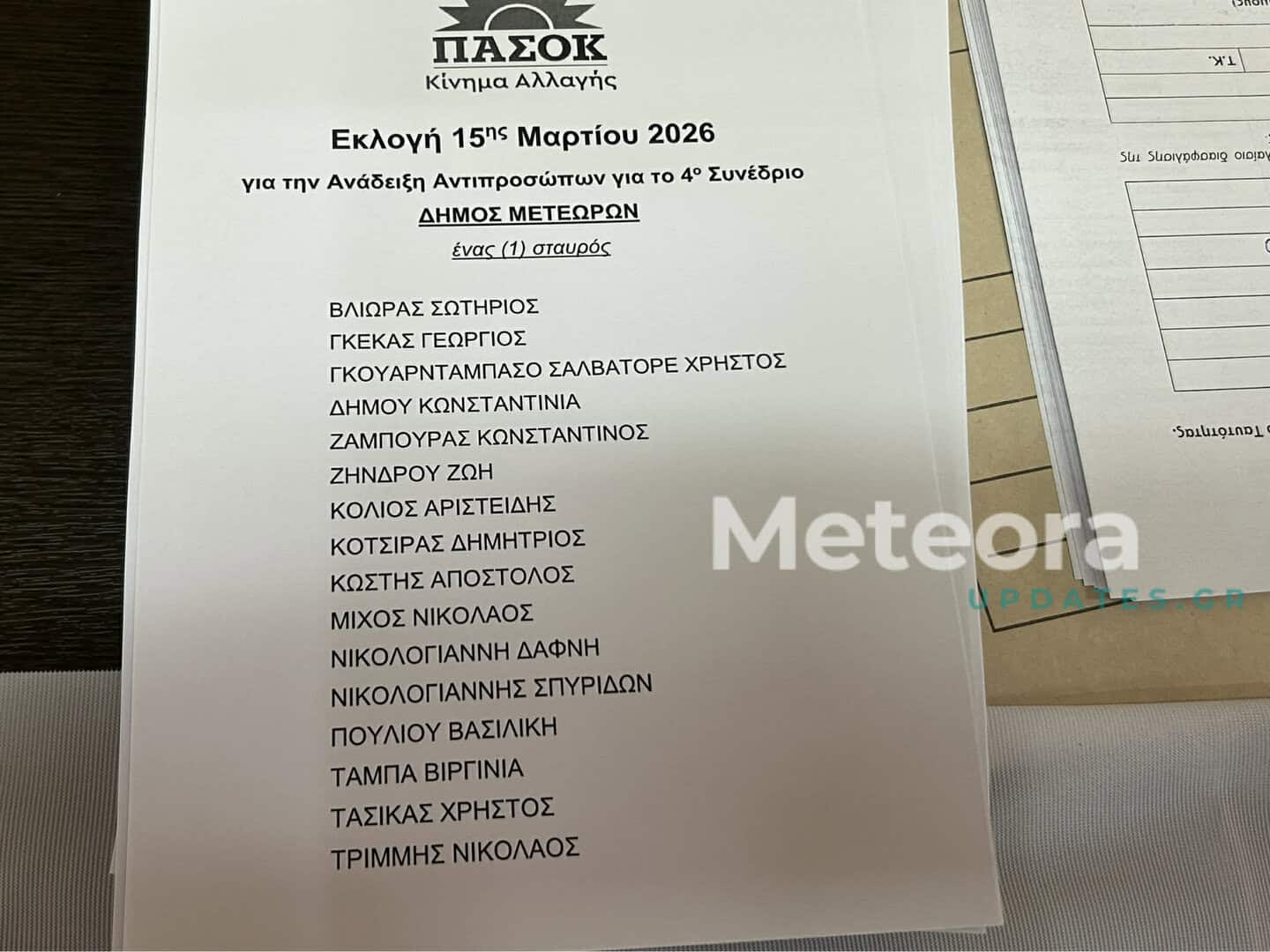 Ο Δήμος Μετεώρων εκλέγει συνολικά 16 συνέδρους. Μετά την κίνηση τακτικής του κ. Σωτήρη Παπαχρήστου να αποσύρει την υποψηφιότητά του —προκειμένου να διασφαλιστεί η ομόνοια και να μην υπάρξει αποκλεισμός κανενός υποψηφίου— στη λίστα παρέμειναν 16 ονόματα.