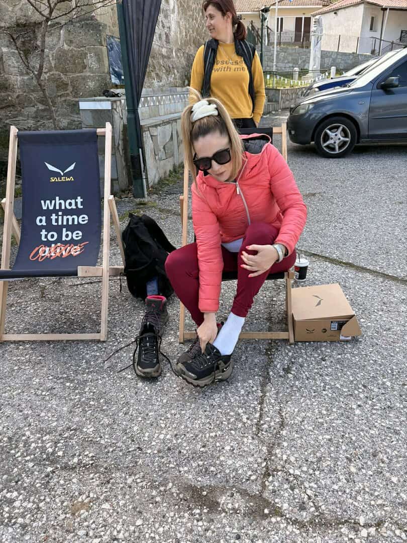 Η συνάντηση είχε οριστεί για τις 10:00 π.μ. στον Γάβρο Καλαμπάκας, από όπου και ξεκίνησε η πεζοπορία στα μονοπάτια του Αγίου Νικολάου. Το ιδιαίτερο στοιχείο της συγκεκριμένης δράσης ήταν η δυνατότητα που είχαν οι συμμετέχοντες να δοκιμάσουν στην πράξη το νέο παπούτσι Pedroc 2 PTX της Salewa (διαθέσιμο σε ανδρικό και γυναικείο), το οποίο είναι σχεδιασμένο για τις απαιτήσεις του ορεινού πεδίου.
