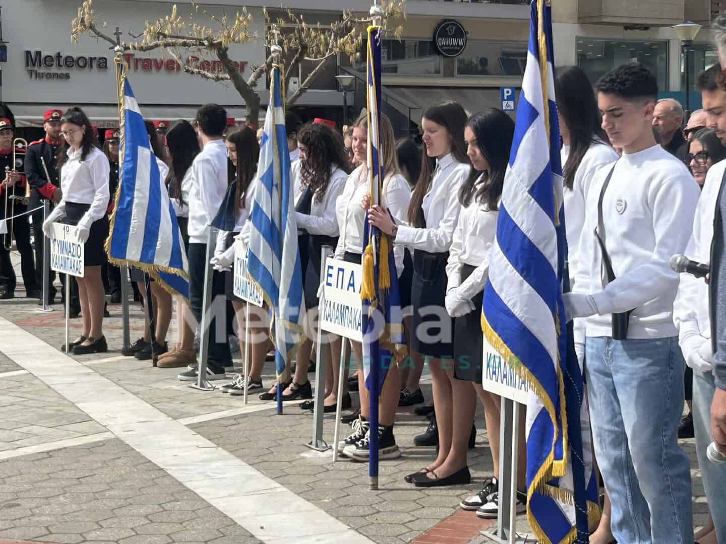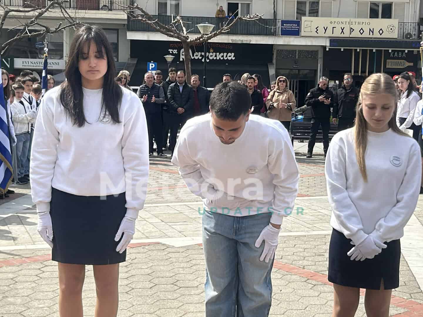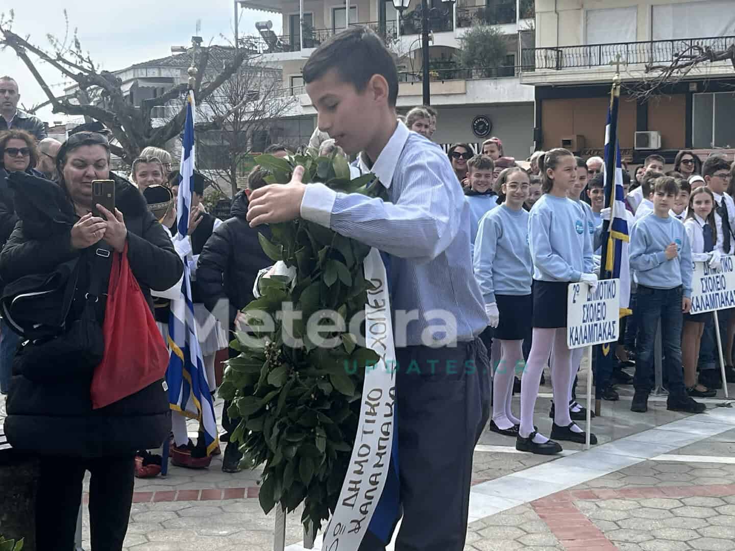 Στις 11:30 π.μ., οι μαθητές και οι μαθήτριες όλων των σχολείων Πρωτοβάθμιας και Δευτεροβάθμιας Εκπαίδευσης συγκεντρώθηκαν στην Πλατεία Ρήγα Φεραίου. Εκεί, μπροστά στις προτομές των Ηρώων της πόλης μας, απέδωσαν φόρο τιμής σε εκείνους που αγωνίστηκαν για την ελευθερία της πατρίδας μας.