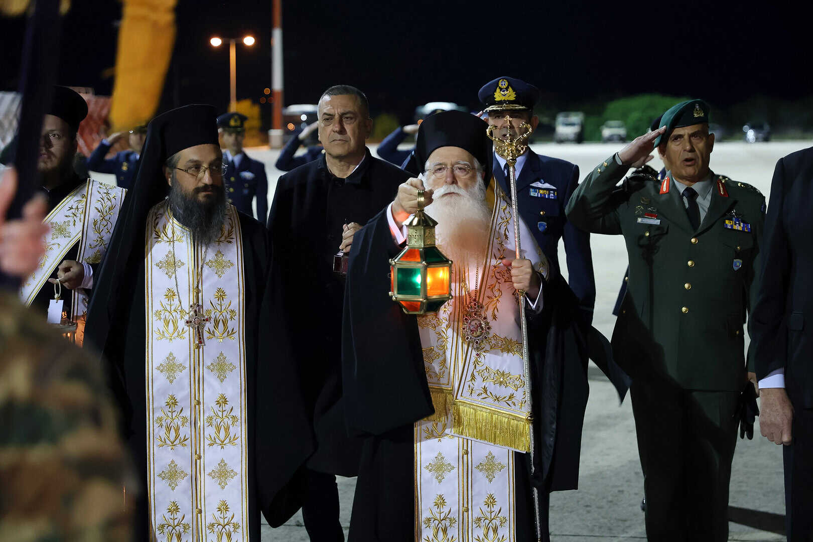 Το Άγιο Φως μεταφέρθηκε από την Αθήνα με ειδική πτήση, προκειμένου να διασφαλιστεί η έγκαιρη διανομή του σε όλες τις ενορίες και τους ιερούς ναούς της ευρύτερης περιφέρειας ενόψει της Αναστάσιμης Ακολουθίας.