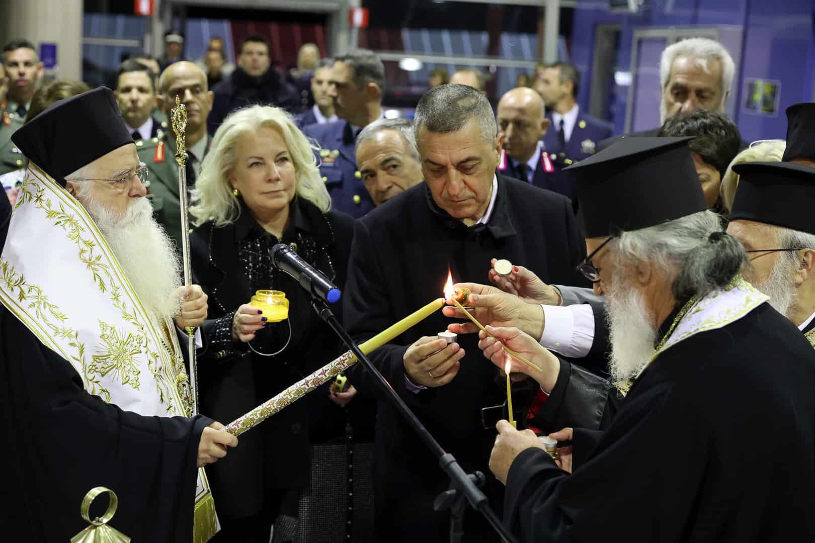 Το Άγιο Φως υποδέχθηκε ο Σεβασμιώτατος Μητροπολίτης Δημητριάδος και Αλμυρού κ.κ. Ιγνάτιος, συνοδευόμενος από τον Περιφερειάρχη Θεσσαλίας, κ. Δημήτρη Κουρέτα.
