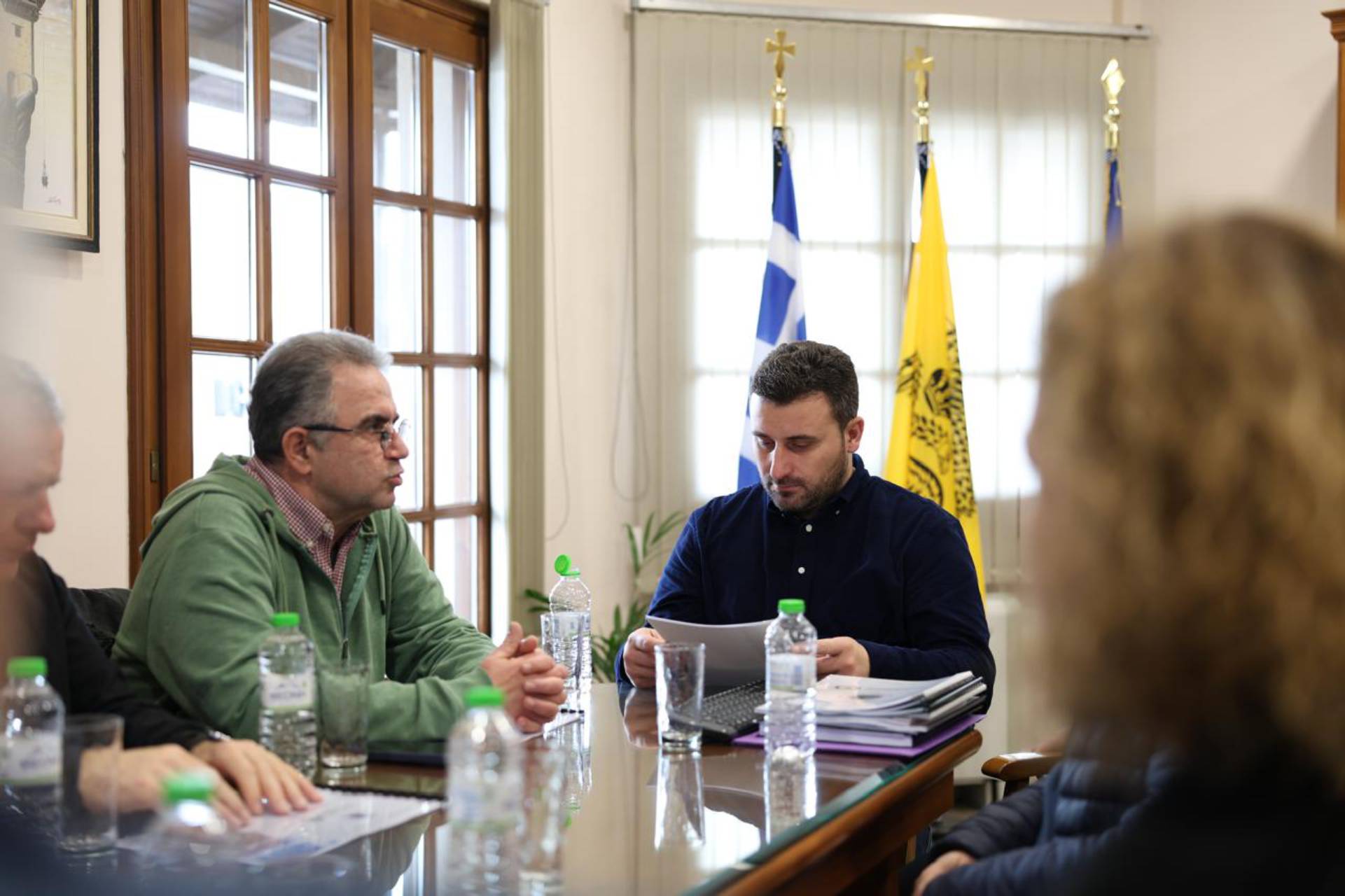 Συνάντηση εργασίας πραγματοποιήθηκε στο Δημαρχείο Καλαμπάκας μεταξύ του Δημάρχου Μετεώρων κ. Λευτέρη Αβραμόπουλου και του Γενικού Διευθυντή Δασών και Δασικού Περιβάλλοντος κ. Ευάγγελου Γκουντούφα, παρουσία υψηλόβαθμων υπηρεσιακών στελεχών της Δασικής Υπηρεσίας. Ο Δήμαρχος Μετεώρων καλωσόρισε τον κ. Γκουντούφα και τα στελέχη της Δασικής Υπηρεσίας στο Δημαρχείο Καλαμπάκας, τονίζοντας ότι τα τελευταία δύο χρόνια έχει αναπτυχθεί μια ιδιαίτερα στενή, ουσιαστική και αποτελεσματική συνεργασία, η οποία έχει ήδη αποδώσει σημαντικά και μετρήσιμα αποτελέσματα για τον Δήμο και την ευρύτερη περιοχή.