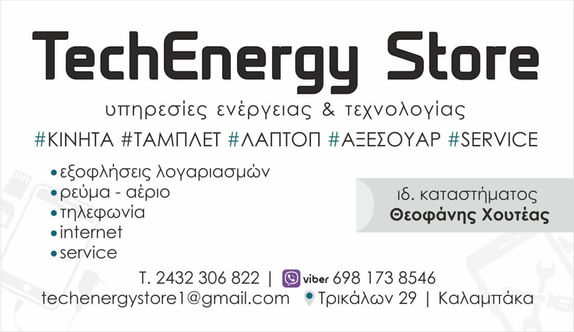 Στο «TechEnergy Store ~ Φάνης Χουτέας» είμαστε κοντά σου για το νέο σου ξεκίνημα με εκπληκτικά πακέτα και μοναδικές προσφορές..