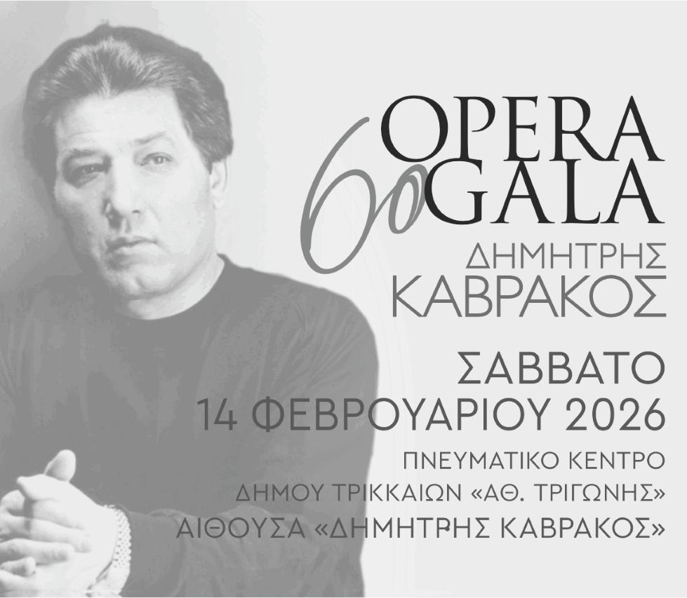 Ο Δήμος Τρικκαίων ενημερώνει ότι το πρωί της Τετάρτης 11 Φεβρουαρίου 2026 θα πραγματοποιηθεί η διάθεση των Δελτίων Δωρεών Εισόδου στο 6ο Opera Gala «Δημήτρης Καβράκος».